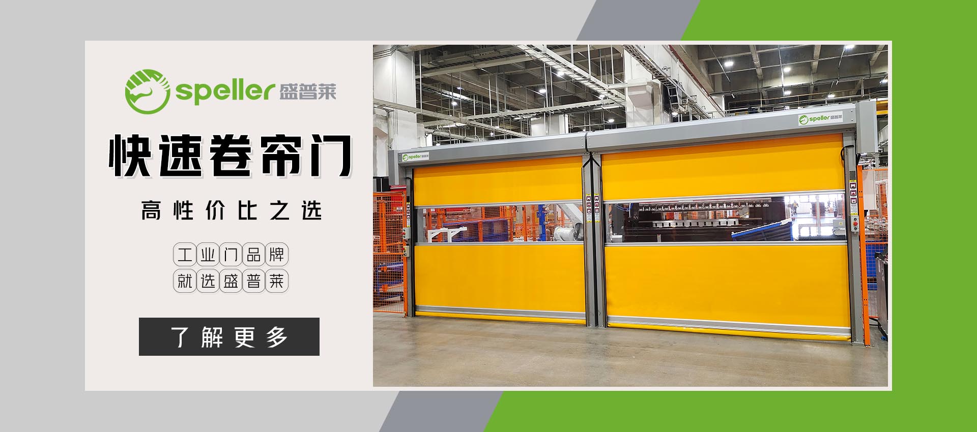 ???? ? 盛普萊門業(yè)制造(江蘇)有限公司,專為研發(fā)、生產(chǎn)、銷售普及型工業(yè)門而創(chuàng)立,核心團隊由行業(yè)中富有經(jīng)驗的技術研發(fā),生產(chǎn)制造,營銷管理等專業(yè)人才組成。立志將“盛普萊”品牌成為高性價比、普及型工業(yè)門的行業(yè)品牌代名詞。專注于快速卷簾門、工業(yè)提升門、硬質快速門、潔凈室快速門、堆積式快速門、保溫快速門、物流裝卸貨平臺、工業(yè)門封等普及型工業(yè)門系列近70款產(chǎn)品的技術開發(fā)、設計制造、銷售安裝以及售后服務,按照行業(yè)標準持續(xù)技術創(chuàng)新,產(chǎn)品擁有多項核心技術與權威認證。市場立足蘇州,緊密聯(lián)動江、浙、滬長三角地區(qū),銷售網(wǎng)絡遍布全國幾十個主要工業(yè)城市,在全國設立了近百個服務網(wǎng)點,有效的服務半徑內,實現(xiàn)7×12小時全時段便捷化服務。